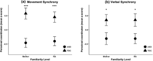 Fitzpatrick, P., Romero, V., Amaral, J. L., Duncan, A., Barnard, H., Richardson, M. J., et al. (2017a). Evaluating the importance of social motor synchronization and motor skill for understanding autism. Autism Research, 10, 1687–1699. https://doi.org/10.1002/aur.1808.