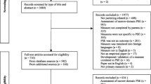 Studies were considered for inclusion if they utilised a randomised control trial design to evaluate a group intervention for parents of preschool children and assessed parental self-efficacy as an outcome measure. Relevant studies were identified by reference to assessing parental self-efficacy, parental self-confidence or parental competence. The type of group intervention offered and the length of intervention were not restricted because the aim was to identify the range of group interventions in which self-efficacy was assessed. Interventions which were mainly group-based but supplemented with individual sessions were included in the review. Although children enter the UK school system the school year they turn five, studies with parents of children up to the age of six were included to fit in with the international age for starting school (Sargent et al. 2013). The wide age range from birth to 6 years was chosen in line with the UK government’s focus on early years and preschool provision and in order to capture a wider range of group-based interventions parents take part in.