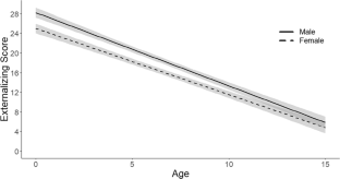 Internalizing problems decline more rapidly for boys than for girls.