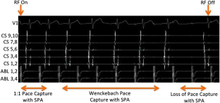 Steven D, Reddy VY, Inada K, Roberts-Thomson KC, Seiler J, Stevenson WG, et al. Loss of pace capture on the ablation line: a new marker for complete radiofrequency lesions to achieve pulmonary vein isolation. Heart rhythm : the official journal of the Heart Rhythm Society. 2010;7(3):323–30.