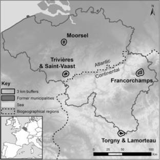 This research was supported by the Belgian Science Policy (Project BR/132/A1/BELBEES). We thank the Royal Belgian Institute of Natural Sciences of Brussels, especially W. Dekoninck and Y. Gerard, for the access to the F.J. Ball collection of bumblebees. We also want to thank T. Kervyn for his help in georeferencing the centenary topographic maps, as well as D. Brogna and C. De Montpellier d’Annevoie for their advice in the realization of land cover maps. For their help in sampling, we would like to thank N. Brasero, F. Colin, D. De Grave, M. De Munter, T. Delandsheer, C. Deschepper, D. Evrard, M. Folschweiller, M. Gérard, L. Krapf, T. Lecocq, F. Marlière, L. Marshall, B. Martinet, P. Raquez, and K. Schoonvaere. We also thank T. Wood for his proofreading.