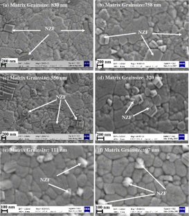 This study investigates the variation of magnetoelectric (ME) coefficient as a function of the piezoelectric grain size in the composite system of 0.8 Pb(Zr0.52Ti0.48)O3–0.2 Ni0.8Zn0.2Fe2O4. It was found that as the piezoelectric-phase grain size increases the overall resistivity, piezoelectric, dielectric, and ferroelectric property of the composite increases and saturates above 600 nm. Below 200 nm average grain size, piezoelectric and dielectric properties decrease rapidly. The ferroelectric Curie temperature was found to decrease from 377 to 356 °C as the average grain size decreases from 830 to 111 nm. ME coefficient of the composite showed a rapid change below grain size of 200 nm and was found to saturate above 600 nm to a value of 155 mV/cm.Oe.