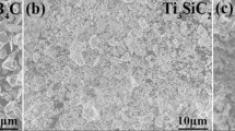 All samples were prepared with an α-SiC starting powder, (SIKA Sintex 15 C) with d 50 measured as 0.8 μm on a Malvern Mastersizer 3000, surface area 15 ± 1 m2 g−1 and 0.83 wt% total O. Two sizes of B4C were used with d 50 values of approximately 7- and 70-μm (Sigma Aldrich research purity B4C). According to LECO analysis provided by AMG analytical services, Rotherham, UK, the 7-μm Sigma grade has 0.160 wt% O and 70-μm Sigma grade has 0.041 wt% O.