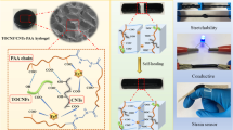 Lai J, Zhou H, Wang M, Chen Y, Jin Z, Li S, Yang J, Jin X, Liu H, Zhao W (2018) Recyclable, stretchable and conductive double network hydrogels towards flexible strain sensors. J Mater Chem C 6(48):13316–13324