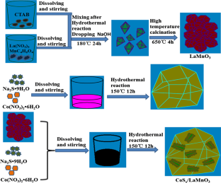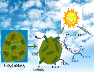 The expansion of the optical response range and the high photoelectron holes separation and the transfer efficiency are prerequisites for the excellent hydrogen evolution performance of the catalyst. In this paper, amorphous CoSx is combined with rare-earth complex LaMnO3 and under the characterization of SEM, TEM, XRD and XPS, the successful synthesis of the composite catalyst was demonstrated; characterization results by UV–Vis, BET and electrochemical workstations show that the composite material exposes more active sites, and the close contact interface formed between the two effectively improves the separation and transmission of photogenerated carriers, and the ability of the composite material to sense light is also significantly enhanced. After optimizing the hydrogen production conditions of the composite catalyst, the hydrogen production under visible light (≥ 420 nm) for 5 h reached 458.8 μmol, which was about 6.8 and 4.5 times that of pure LaMnO3 and CoSx, and the hydrogen evolution stability of the material is very good. Studies have shown that amorphous CoSx is a good material that can replace precious metals for hydrogen production.