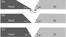 Sun J, Yan Q, Li Z, Huang J (2016) Effect of bevel angle on microstructure and mechanical property of Al/steel butt joint using laser welding-brazing method. Mater Des 90:468–477