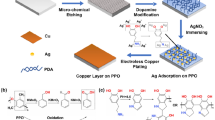 Zhang J, Feng J, Jia L, Zhang H, Zhang G, Sun S, Zhou T (2019) Laser-induced selective metallization on polymer substrates using organocopper for portable electronics. ACS Appl Mater Interf 11(14):13714–13723. https://doi.org/10.1021/acsami.9b01856