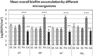 This work was funded by the following grants from the Spanish MINECO (MAT2013-48224-C2-2-R and MAT2013-48224-C2-1-R). Pérez-Jorge C wishes to thank J William Costerton and the Medical Biofilm Laboratory at the Center for Biofilm Engineering in Montana, USA, for the opportunity to be a visiting researcher and the National Spanish Society of Infection Diseases and Microbiology (SEIMC) for funding with a Mobility grant 2012. Hernández-López J.M. is receptor of the JAE-predoctoral grant funded by the CSIC.
