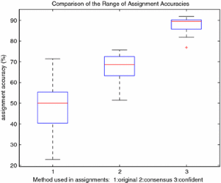 Our proof demonstrates that our voting scheme is sound and optimal, by showing that our algorithm returns the assignment that maximizes the likelihood. In our case, the set of observed data values comprises the assignments for each model in our NMA ensemble, and the unknown parameters of the distribution are the unknown correct assignments. An MLE estimator has many desirable properties: In particular, it is consistent, which means that it converges to the true value of the estimated parameter (Wasserman 2004). This means that, as the number of models in our NMA ensemble increases, the assignments returned by our voting scheme converge to the correct assignments. This proof depends on our assumption that the assignments computed for each model are independent and identically distributed, according to our noise model (which is described below).