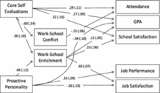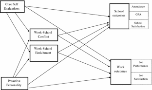 The purpose of this study was to investigate a dispositional model of the work–school interface. In particular, we examined the relationship between core self-evaluations (CSEs) and proactive personality with both work–school conflict (WSC) and work–school enrichment (WSE) as well as a variety of work and school outcomes.