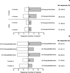 Costa, M. L. M., Borges, M., and Vilela, E. F. 2000. Effect of stereoisomers of the main component of the sex pheromone of Euschistus heros (F.) (Heteroptera: Pentatomidae) in the attractiveness of female. An. Soc. Entomol. Bras. 29:413–422.