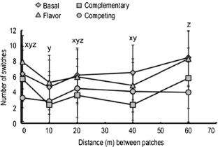 Bernays, E. A., Angel, J. E., and Augner, M. 1997. Foraging by a generalist grasshopper: The distance between food resources influences diet mixing and growth rate (Orthoptera: Acrididae). J. Insect Behav. 10:829–840.