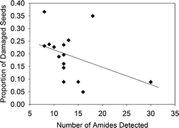 This research was supported by National Science Foundation (NSF) grant DEB 1210884 to SRW and MDB, NSF grant DEB 0614883 to MDB and LAD, a National Geographic Waitt Grant to SRW, and an Organization for Tropical Studies (OTS) Research Fellowship to SRW. Work related to the phytochemical characterization of compounds was supported by start-up funds from the University of Nevada to CSJ and NSF grant DEB 1145609 to CSJ and LAD. We are grateful to Hannah Burk, Heather Stone, Daniel Brunelle, and Maria Obando-Quesada for assistance with sample collection and field work, and to Jason Hong for assistance with sample preparation for amide analysis. The OTS staff and especially Bernal Matarrita and Danilo Brenes provided logistical support at La Selva Biological Station, and Javier Guevara from the Ministerio del Ambiente y Energía in Costa Rica assisted with permits. Comments from two anonymous reviewers greatly improved the manuscript.