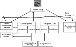 Raffa KF, Aukema BH., Erbilgin N, Klepzig KD, Wallin KF (2005) Interactions among conifer terpenoids and bark beetles across multiple levels of scale: An attempt to understand links between population patterns and physiological processes. In: Romeo JT (ed) Rec. Adv. Phytochem. Elsevier, pp. 79–118
