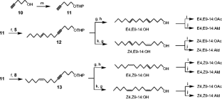Bestmann HJ, Attygalle AB, Schwarz J, Garbe W, Vostrowsky O, Tomida I (1989) Identification and synthesis of female sex pheromone of eri-silkworm, Samia cynthia ricini (Lepidoptera: Saturniidae). Tetrahedron Lett 30:2911–2914. doi:10.1016/S0040-4039(00)99156-1