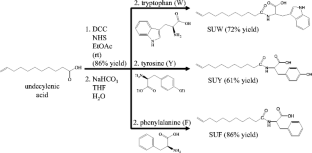 1H-NMR and 13C-NMR spectra of undecanoyl-l-tryptophan, undecanoyl-l-tyrosine, and undecanoyl-l-phenylalanine. This material is available free of charge via the Internet at http://pubs.acs.org (PDF 38.1 KB).