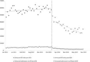 Dresden, S. M., Powell, E. S., Kang, R., McHugh, M., Cooper, A. J., Feinglass, J. (2016). Increased emergency department use in Illinois after implementation of the Patient Protection and Affordable Care Act. Annals of Emergency Medicine. doi:10.1016/j.annemergmed.2016.06.026.