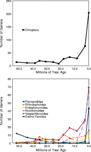 Jones KE, Bininda-Emonds ORP, Gittleman JL (2005) Bats, clocks, and rocks: diversification patterns in Chiroptera. Evolution 59:2243–2255