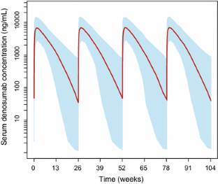 Sutjandra L, Rodriguez RD, Doshi S, Ma M, Peterson MC, Jang GR, Chow AT, Perez-Ruixo JJ (2011) Population pharmacokinetic meta-analysis of denosumab in healthy subjects and postmenopausal women with osteopenia or osteoporosis. Clin Pharmacokinet 50:793–807
