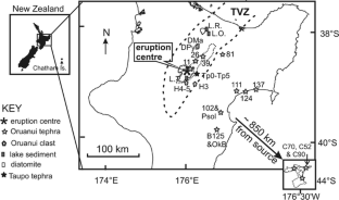 Lowe DJ, Blaauw M, Hogg AG, Newnham RM (2013) Ages of 24 widespread tephras erupted since 30,000 years ago in New Zealand, with re-evaluation of the timing and palaeoclimatic implications of the Lateglacial cool episode recorded at Kaipo bog. Quat Sci Rev 74:170–194