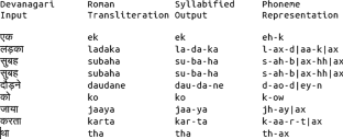 Weerasinghe, R., Wasala, A., & Gamage, K. (2005). A rule based syllabification algorithm for sinhala. In Natural language processing–IJCNLP 2005 (pp. 438–449). Berlin: Springer.