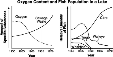 1. Within aquatic ecosystems there is a direct correlation between dissolved oxygen content and the population of various species of fish. Which relationship can correctly be inferred from the data presented in the graphs below?