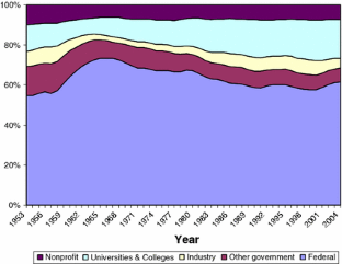 Sharp, A. S., & Kleppner, D. (1994). Views from the bench: Funding biomedical research and the physical sciences. In The fragile contract: University science and the federal government.