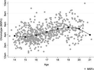 Roenneberg, T., Kuehnle, T., Pramstaller, P. P., Ricken, J., Havel, M., Guth, A., & Merrow, M. (2004). A marker for the end of adolescence. Current Biology, 14(24), R1038–R1039. https://doi.org/10.1016/j.cub.2004.11.039.
