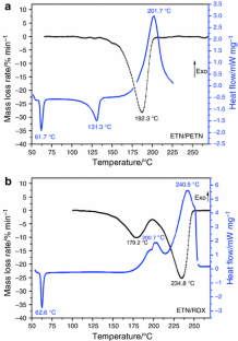 Singh G, Felix P, Pandey DK, Agrawal JP, Sikder AK. Studies on energetic compounds. Part XXXIX. Thermal analysis of a plastic bonded explosive containing RDX and HTPB. J Therm Anal Calorim. 2005;79:631–5.