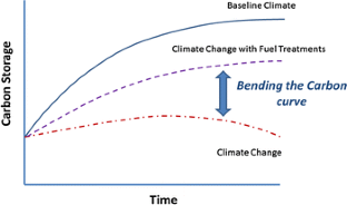Our results suggest that fuel treatments have the potential to ‘bend the C curve’, maintaining carbon resilience despite climate change and climate-related changes to the fire regime. Simulated fuel treatments resulted in reduced fire spread and severity. There was partial compensation of C lost during fuel treatments with increased growth of residual stock due to greater available soil water, as well as a shift in species composition to more drought- and fire-tolerant Pinus jeffreyi at the expense of shade-tolerant, fire-susceptible Abies concolor.