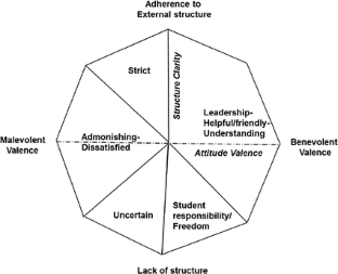 The Questionnaire on Teacher Interaction (QTI) is a teacher–student relationship measure whose underlying two-dimensional structure is represented in a circumplex model with eight sectors. Using Smallest Space Analysis (SSA), this study examined the circumplex structure of the Chinese version of the QTI among a convenience sample of 731 primary-school students in Hong Kong. The study revealed that the SSA solution fits the circumplex structure of the Model for Interpersonal Teacher Behavior and uncovered a two-dimensional solution yielding five sectors in a clockwise direction: Strict, Leadership-Helpful/Friendly-Understanding, Student Responsibility/Freedom, Uncertain, and Admonishing-Dissatisfied. While the Leadership-Helpful/Friendly-Understanding sector was the largest, the Student Responsibility/Freedom sector was the smallest, with few items constituting it. For the two dimensions, the vertical dimension was named Structure Clarity, with adherence to external structure (Strict sector) at one extreme and lack of structure (Uncertain sector and Student Responsibility/Freedom sector) at the other extreme. The horizontal axis was labelled Attitude Valence, with benevolent valence (Leadership sector, Helpful/Friendly sector and Understanding sector) at one end and malevolent valence (Admonishing sector and Dissatisfied sector) at the other end of the axis. The positioning of the five sectors in the present study is in line with the factor structure that was often found in previous research on the circumplex model. By presenting a somewhat different interpretation of the two dimensions and some additional items, we hope that future research will verify our suggestions across different sociocultural settings.