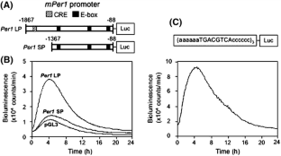 Yagita K, Okamura H (2000) Forskolin induces circadian gene expression of rper1, rper2 and dbp in mammalian rat-1 fibroblasts. FEBS Lett 465:79–82
