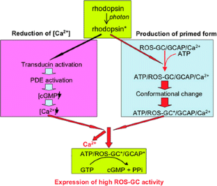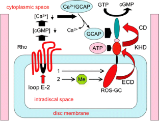 Yamazaki A, Yamazaki M, Yamazaki RK, Usukura J (2006) Illuminated rhodopsin is required for strong activation of retinal guanylate cyclase by guanylate cyclase-activating proteins. Biochemistry 45:1899–1909