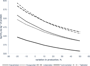 In central Asian countries, sheep (Ovis aries) and goats (Capra hircus) represent a key economic resource for millions of people living in rural communities and, at the same time, a critical source of greenhouse gas (GHG) emissions. This study aims to estimate GHG emissions of several economic traits of sheep and goats and investigate sustainable mitigation strategies. It advances beyond previous studies by calculating the GHG emissions of traits of economic importance rather than reporting average animal emission and can thus provide insights for creating better-targeted mitigation strategies. In dairy sheep in Tajikistan, the emission intensity (EI) decreased from 62.4 to 56.7 kg CO2-eq kg−1 of protein as the production of milk increased by 20%. In meat goats raised in Turkmenistan, the EI decreased by 2.6 kg CO2-eq kg−1 of protein when simulating an increase in meat production of + 20%. Improving female fertility by 10% scaled down the EI of meat sheep in Uzbekistan by 36 kg CO2-eq kg−1 of protein. The improvement of meat and milk productions, female fertility, and litter size and the reduction of mortality, and female culling can reduce the emission intensity of sheep and goats globally. Thus, genetic improvement of economic traits is an important global mitigation tool. Furthermore, improvement of national and international sheep and goat strategies can provide policymakers with valuable information to develop regional and global mitigation actions.