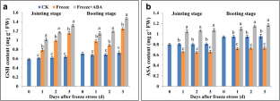 Zhang, N., Li, L., Zhang, L. et al. Abscisic acid enhances tolerance to spring freeze stress and regulates the expression of ascorbate–glutathione biosynthesis-related genes and stress-responsive genes in common wheat. Mol Breeding 40, 108 (2020). https://doi.org/10.1007/s11032-020-01187-9
