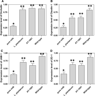 Zhang M, Wang XQ, Zhou YK et al (2009) Effects of oral Lactobacillus plantarum on hepatocyte tight junction structure and function in rats with obstructive jaundice. Mol Biol Rep [Epub ahead of print]