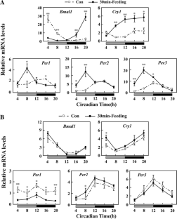 Wu T, Ni Y, Kato H, Fu Z (2010) Feeding-induced rapid resetting of the hepatic circadian clock is associated with acute induction of Per2 and Dec1 transcription in rats. Chronobiol Int 27:1–18