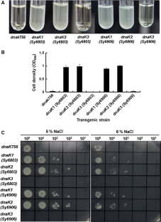 Sugino M, Hibino T, Tanaka Y, Nii N, Takabe T (1999) Overexpression of DnaK from a halotolerant cyanobacterium Aphanothece halophytica acquires resistance to salt stress in transgenic tobacco plants. Plant Sci 137:81–88