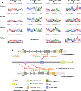 Laumonnier F, Bonnet-Brilhault F, Gomot M, Blanc R, David A, Moizard MP, Raynaud M, Ronce N, Lemonnier E, Calvas P, Laudier B, Chelly J, Fryns JP, Ropers HH, Hamel BC, Andres C, Barthelemy C, Moraine C, Briault S (2004) X-linked mental retardation and autism are associated with a mutation in the NLGN4 gene, a member of the neuroligin family. Am J Hum Genet 74:552–557