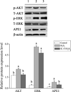 The production of reactive oxygen species (ROS) during oxidative stress may cause cellular injury. Interleukin-15 (IL-15) is one of the skeletal muscle secreted myokines, and there is no information that reported its anti-oxidative capability in skeletal muscle. The aim of this study therefore is to investigate the protective effects of myokine IL-15 against H2O2-mediated oxidative stress in C2C12 myoblasts. The results showed that IL-15 pre-incubation reduced the intracellular creatine kinase and lactate dehydrogenase activities, decreased the ROS overload, and protect the mitochondrial network via up-regulated mRNA expression levels of IL-15 and uncoupling protein 3. It also down-regulated the levels of IL-6 and p21 of the myoblasts compared to the cells treated only with H2O2. Meanwhile, apurinic/aprimidinic endonuclease 1 expression and the Akt signaling pathway were stimulated. These effects could contribute to the resumption of cell viability and act as protective mechanism. In conclusion, myokine IL-15 could be a novel endogenous regulator to control intracellular ROS production and attenuate oxidative stress in skeletal muscle cells.