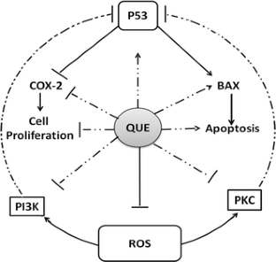 Maurya AK, Vinayak M (2015) Quercetin regresses Dalton’s lymphoma growth via suppression of PI3K/AKT signaling leading to up regulation of p53 and decrease in energy metabolism. Nutr Cancer 67(2):354–363