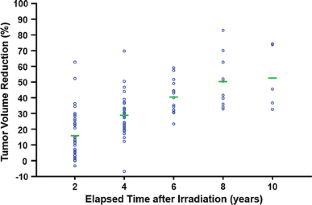 Astner ST, Theodorou M, Dobrei-Ciuchendea M, Auer F, Kopp C, Molls M, Grosu AL (2010) Tumor shrinkage assessed by volumetric MRI in the long-term follow-up after stereotactic radiotherapy of meningiomas. Strahlenther Und Onkol 186:423–429. doi:10.1007/s00066-010-2138-x