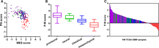 Verhaak RG, Hoadley KA, Purdom E, Wang V, Qi Y, Wilkerson MD, Miller CR, Ding L, Golub T, Mesirov JP, Alexe G, Lawrence M, O’Kelly M, Tamayo P, Weir BA, Gabriel S, Winckler W, Gupta S, Jakkula L, Feiler HS, Hodgson JG, James CD, Sarkaria JN, Brennan C, Kahn A, Spellman PT, Wilson RK, Speed TP, Gray JW, Meyerson M, Getz G, Perou CM, Hayes DN (2010) Integrated genomic analysis identifies clinically relevant subtypes of glioblastoma characterized by abnormalities in PDGFRA, IDH1, EGFR, and NF1. Cancer Cell 17:98–110. doi:10.1016/j.ccr.2009.12.020