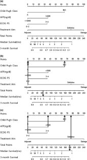 The incidence of brain metastasis from hepatocellular carcinoma (HCC) is increasing because of the improved survival outcome of HCC patients, but the prognosis of these patients is extremely poor. HCC patients with brain metastasis were investigated to identify their prognostic factors for overall survival. Patients with brain metastasis from HCC who had been treated with whole-brain radiotherapy (WBRT) in five hospitals were enrolled in the study. The medical records of the patients were reviewed, and the clinical factors were analyzed to identify the prognostic factors for overall survival. Of the total of 97 patients who were enrolled in the study, 83 were male and the median age at the brain metastases was 56.6 years. Motor weakness (43.3 %) and headache (41.2 %) were common presenting symptoms. The median AFP level was 4180 ng/ml, and 81 patients were assessed as belonging to Child-Pugh classification A upon the diagnosis of brain metastasis. WBRT alone in 71 patients, surgery or radiosurgery combined with WBRT as the adjuvant setting in 18 patients, and WBRT as salvage treatment in 8 patients were performed. The median overall survival of the patients was 3.5 months. In the multivariate analysis, the ECOG performance status (PS), Child-Pugh classification, AFP, and treatment aim showed significant association with the overall survival of the patients. Based on these factors, a nomogram predicting the prognosis was developed. The concordance index of the nomogram was 0.74, and the prediction was well calibrated. In conclusion, the survival outcome of patients with brain metastasis from HCC can be predicted with the nomogram constructed from the ECOG PS, Child-Pugh classification, AFP, and treatment aim.