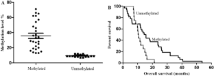 Brigliadori G, Foca F, Dall’Agata M, Rengucci C, Melegari E, Cerasoli S, Amadori D, Calistri D, Faedi M (2016) Defining the cutoff value of MGMT gene promoter methylation and its predictive capacity in glioblastoma. J Neurooncol 128(2):333–339. doi:10.1007/s11060-016-2116-y