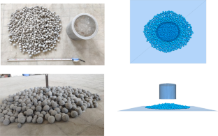 In order to further understand the mechanism of landslide-debris flow and predict the entire movement process and accumulation range of landslide hazards, the movement process of non-cohesive particles and the distribution of accumulation at the bottom of the slope were studied. Firstly, physical laboratory-scale tests on the sliding accumulation process of non-cohesive granular accumulations under self-weight were carried out, and the effects of different volumes and gradations on the sliding accumulation were analyzed. Then, the discrete element software PFC3D was used to perform three-dimensional numerical back analysis of the tests to refine the key parameters required for the numerical simulation, and to understand better the movement and accumulation state of the granular body. The results showed that the spherical particles exhibit obvious lateral expansion during the acceleration stage, and the front-end particles had a clear "shuttle" distribution, which became even more obvious with the increase in the content of large particles. The reverse-order phenomenon of spherical particles after sliding was that the proportion of small particles in the proximal end was far higher than their original proportion in the accumulation body. With the increase in the volume of the accumulation body, the phenomenon became more obvious, and stopping of large particles above the small particles was observed. The research results can provide reference for further studies of the movement process and the distribution patterns of the slip instability failures of non-cohesive accumulation bodies.