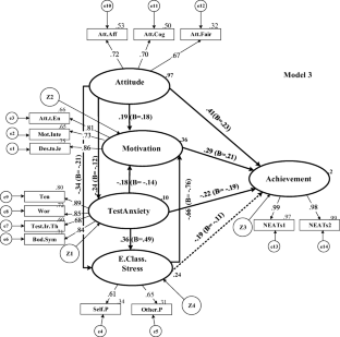 Motivation ← TestAnxiety | − 0.192 | 0.044 | 3.481 | *** | − 0.143 | 0.052 |