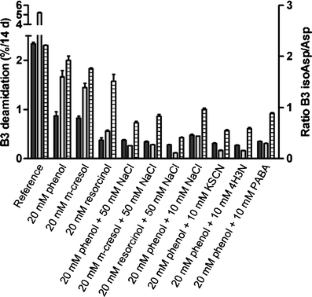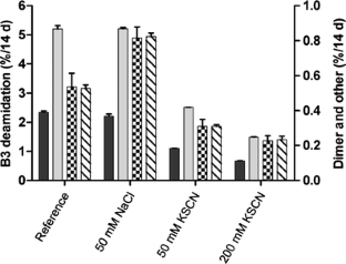 T. V. Brennan and S. Clarke. Deamidation and isoaspartate formation in model synthetic peptides: the effects of sequence and solution environment. In D. W. Aswad (ed.), Deamidation and Isoaspartate Formation in Peptides and Proteins, CRC Press, Boca Raton, 1995, pp. 65–90.