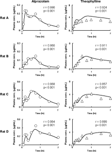 Alprazolam, which generates irregular gastric emptying, was orally co-administered with theophylline to rats, and the plasma concentration profiles or absorption rates were compared between the two drugs. Both drugs are highly absorbable, but alprazolam is rapidly eliminated from plasma, while the elimination of theophylline is very slow.