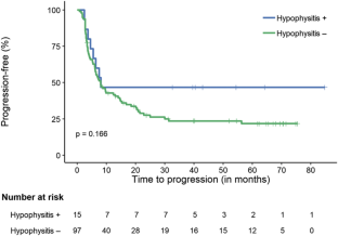 Retrospective, IRB- approved review of consecutive 117 melanoma patients who received ipilimumab between 2011 and 2016 was undertaken. Demographic and clinical characteristics, treatment timing and doses, time to progression after therapy, and survival data were reviewed. Patients were predefined in two groups: patients with and without IH. Descriptive statistics were used to summarize the demographic and clinical characteristics of the study sample. All values are shown as means and standard deviation [mean (SD)] unless indicated otherwise. P < 0.05 was considered to be statistically significant.